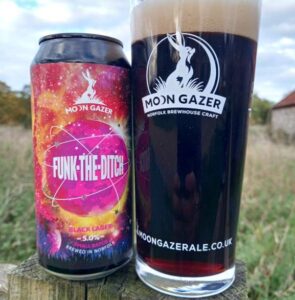 FUNK THE DITCH  5% This black lager has prominent notes of roasted malt, light chocolate, and just a hint of coffee.